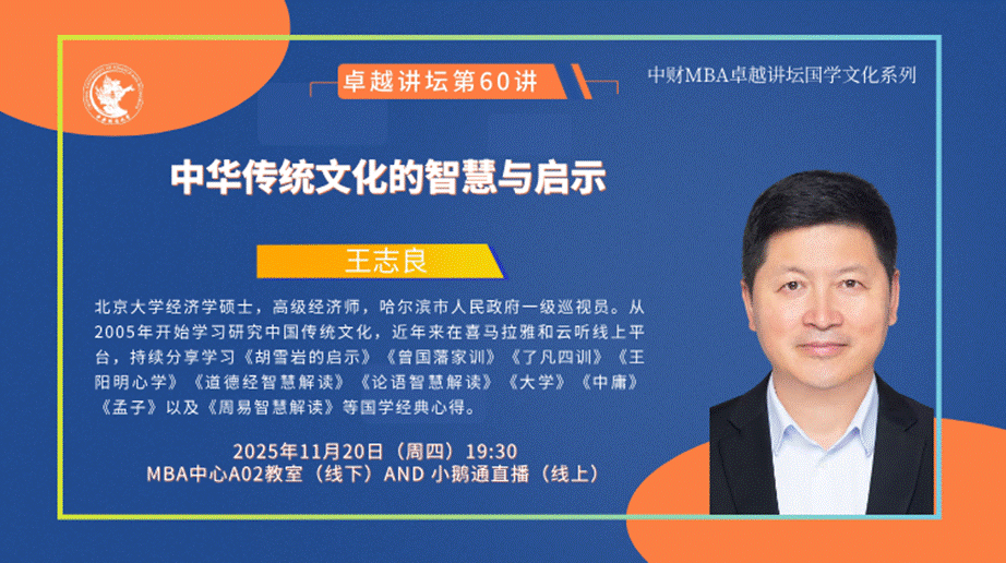 讲座方式:线下——MBA教育中心A02教室(线下参加需扫码报名)