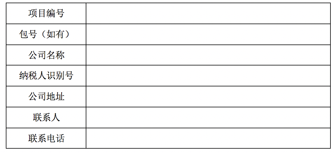 请将电汇底单及以下表格发邮件至[email protected],邮件主题请统一填写:购买标书信息+项目编号,通过邮件方式确认报名。