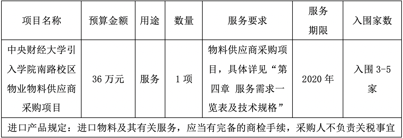 1、项目名称:日本av引入学院南路校区物业物料供应商采购项目