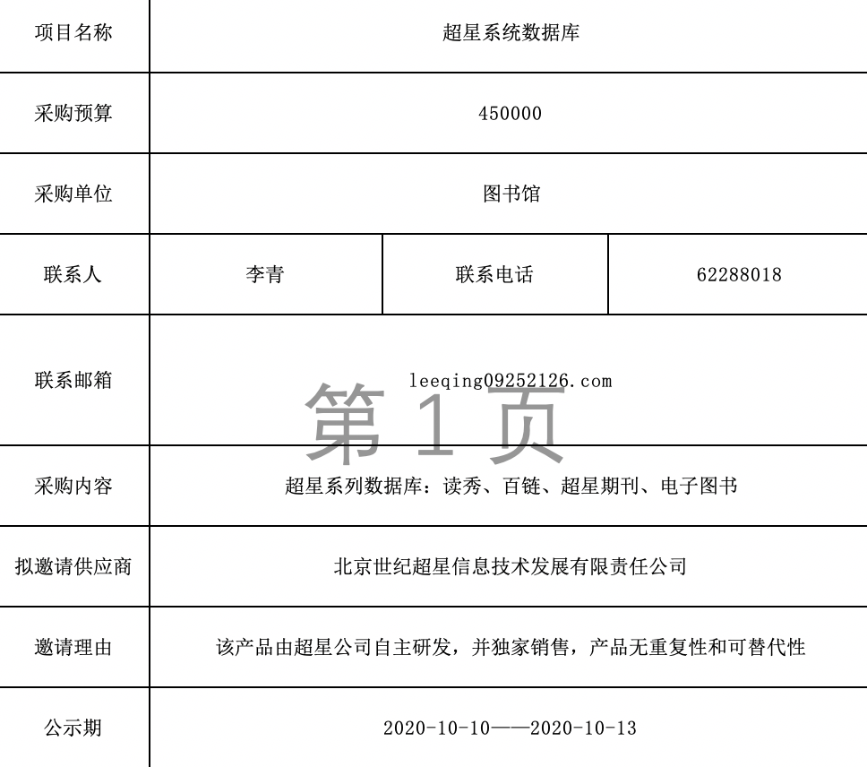 超星系统数据库项目单一性采购需求公示表